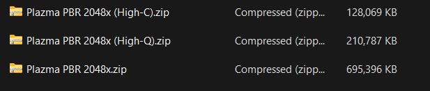 Plazma PBR features the option for jpg compression instead of png. Png files are lossless and high quality, but they come with very large files size. With jpg you can greatly reduce the file size by slightly reducing the quality. This feature allows for up to 5x smaller texture packs so you don’t have to waste much storage on downloading Plazma PBR.